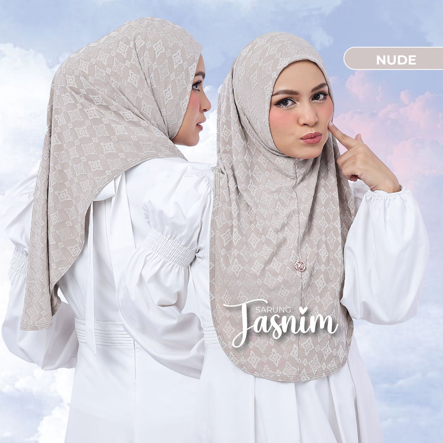 INSTANT TUDUNG SARUNG TASNIM hadir dengan kain premium Jackward berkilat. Hijab ini ironless dan stretchable, memudahkan penggunaan sehari-hari. la adalah pilihan sempurna untuk muslima yang mencari gaya dan keselesaan.